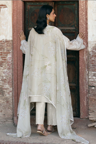 - Expertly crafted with chikankari lawn fabric, this 3-piece suit exudes elegance with its intricate front and sleeve design. The dyed back adds a touch of sophistication, while the cambric chikankari trouser ensures comfort and durability. Complete the look with the printed chiffon dupatta for a charming ensemble.
