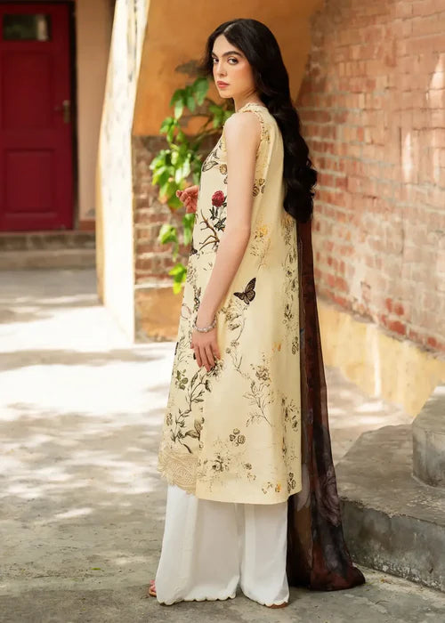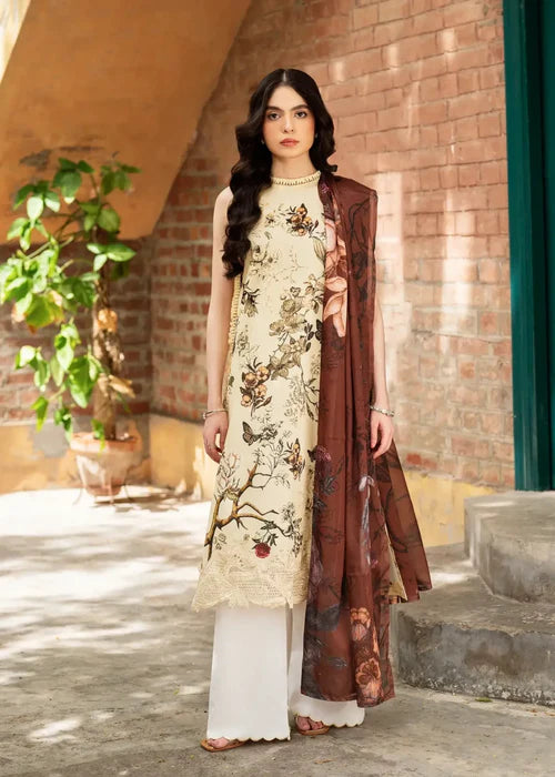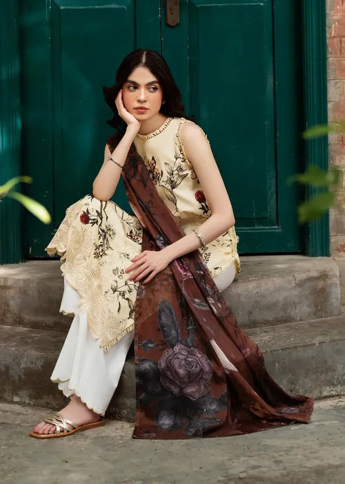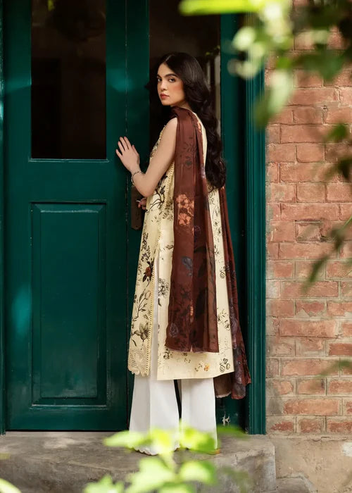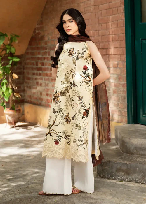 -Digital printed dupatta on polly silk 2.5Mtr. -Digital printed shirt on lawn 3Mtr -Embroidered daman border for front on organza -Plain dyed trouser on cotton 2.4Mtr